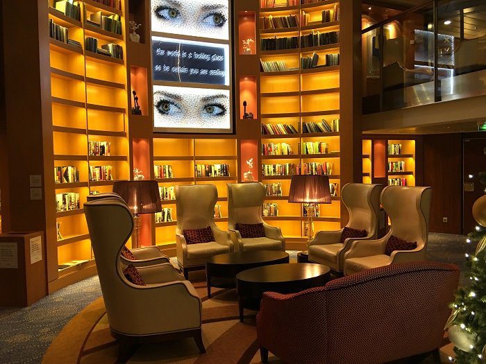 The whole ship has a lovely relaxed vibe to it. There is a beautiful library over two-decks, which is a delightful open-ended space where I found myself drifting towards on many occasions. It is operated on an ‘honour’ system so you can check out a book 24/7. On the floor below the library there is another area for relaxation called the Hideaway. Here you will find plush soft furnishings as well as cosy pods in earth brown and green hues. Very cool, very laid back.